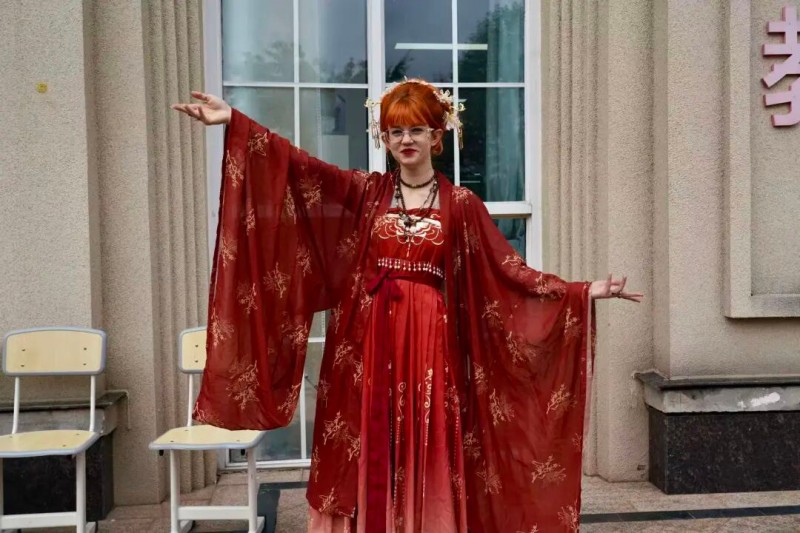 传统服饰展示:白俄罗斯师生兴致勃勃换上汉服、旗袍,指尖轻抚精致的刺绣与盘扣,在镜头前感受中式服饰的典雅庄重;