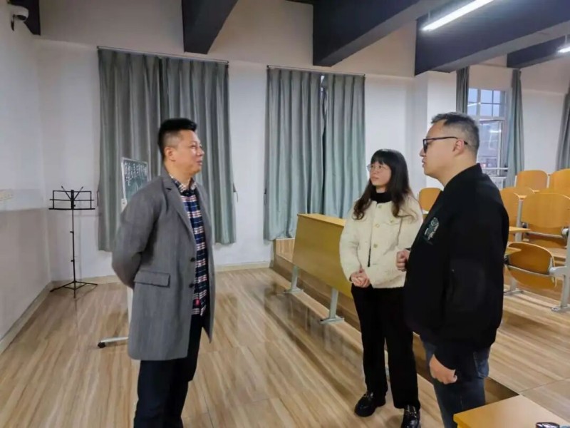 这场精彩演出的背后,是校企协同的深度赋能。早在10月14日,学校便与德阳市演艺中心举行专题研讨。艺体教研室主任刘姝姝介绍了学院艺术教育发展规划,德阳市文化馆馆长、总经理何正军分享了行业视野与资源优势,为合作奠定基础。11月6日,学校又特邀何正军与周士佳老师来校,对参演教师进行现场指导。两位专家细致聆听伴奏与演唱,逐一提出专业建议,为演出质量筑牢根基。