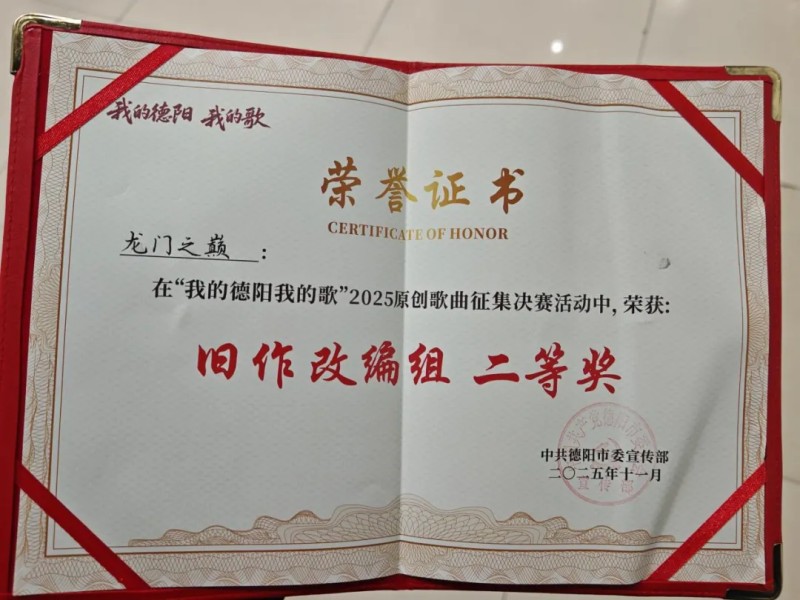 4、德阳市文学艺术界联合会承办的“我的德阳我的歌”2025原创歌曲征集决赛,我院代表绵竹市的参赛作品《龙门之巅》荣获全场第二名(二等奖)