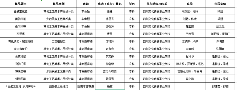 四川文化传媒职业学院学子在第三届四川省大学生民族工艺美术创意设计大赛荣获大奖11项