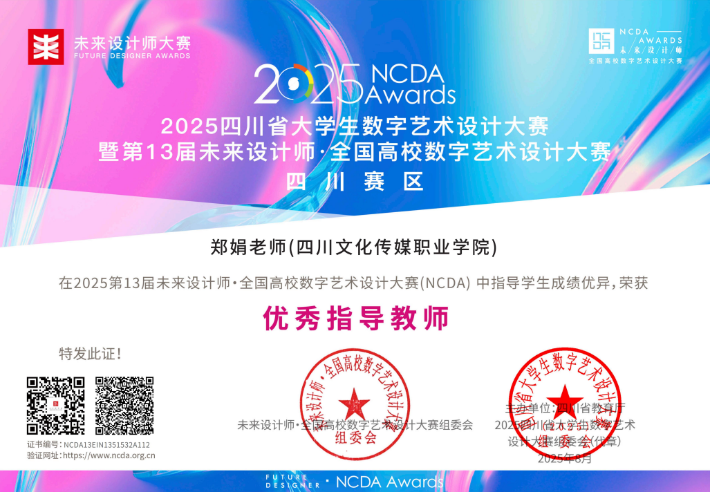 四川文化传媒职业学院信息与应用技术学院师生在2025年第13届未来设计师·全国高校数字艺术设计大赛中荣获佳绩