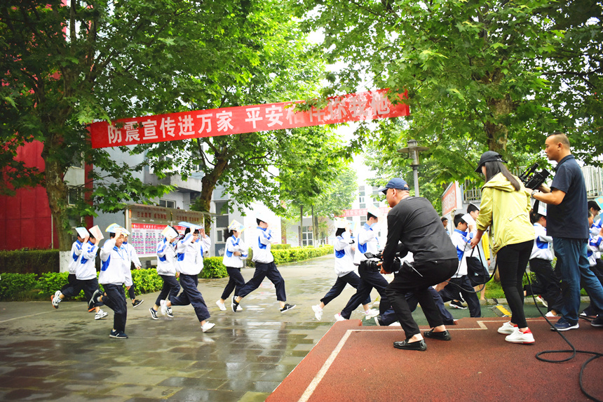 四川文化传媒职业学院师生现场直播拍摄崇州市防震减灾应急综合演练