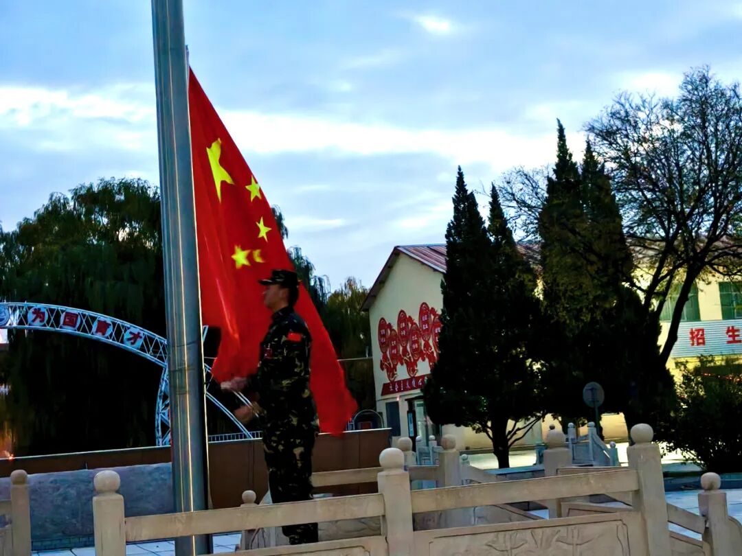 清晨,伴随第一缕阳光,国旗护卫队迈着铿锵有力的步伐,护送国旗走向升旗台。伴随着庄严的国歌,五星红旗冉冉升起,现场师生肃穆行注目礼,以赤诚之心抒发爱国情怀。