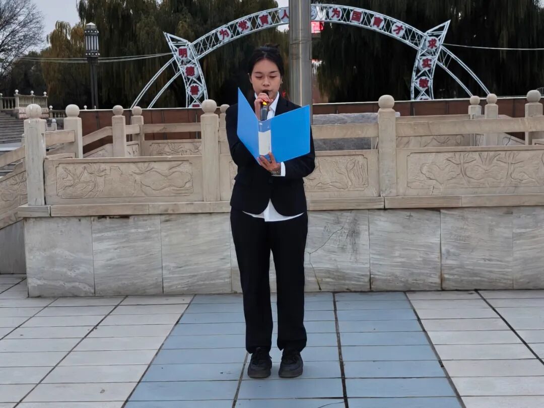 杨瑞宣读《校园禁烟控烟倡议书》,向全体师生发出“拒绝烟草、守护健康、共建无烟校园”的号召,呼吁大家从自身做起,共同维护校园环境。