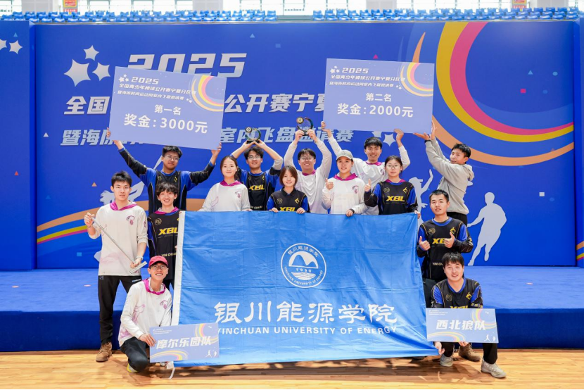 在刚刚落幕的2025年全国青少年棒球公开赛宁夏分赛区暨海原时尚运动周室内飞盘邀请赛,银川能源学院飞盘队的同学们凭借顽强拼搏的斗志与日益精进的技战术水平,从众多队伍中脱颖而出,勇夺冠军、亚军并分别获得3000元和2000元的奖金,创造了我校飞盘协会建队以来的最佳战绩,书写了青春赛场上又一页闪亮篇章。