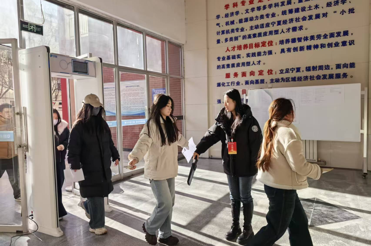 在考务组织方面,学校严格执行国家考试规范,试卷保密室实行专人值守,考生入场依次通过智能安检门安检与人工安检,听力播放由专业英语教师全程保障。整个考试过程中,大家通力协作、密切配合,考场井然有序,各项工作顺利推进。在全体工作人员和考生的共同努力下,本次全国大学英语四六级考试银川能源学院考点各项工作圆满完成。