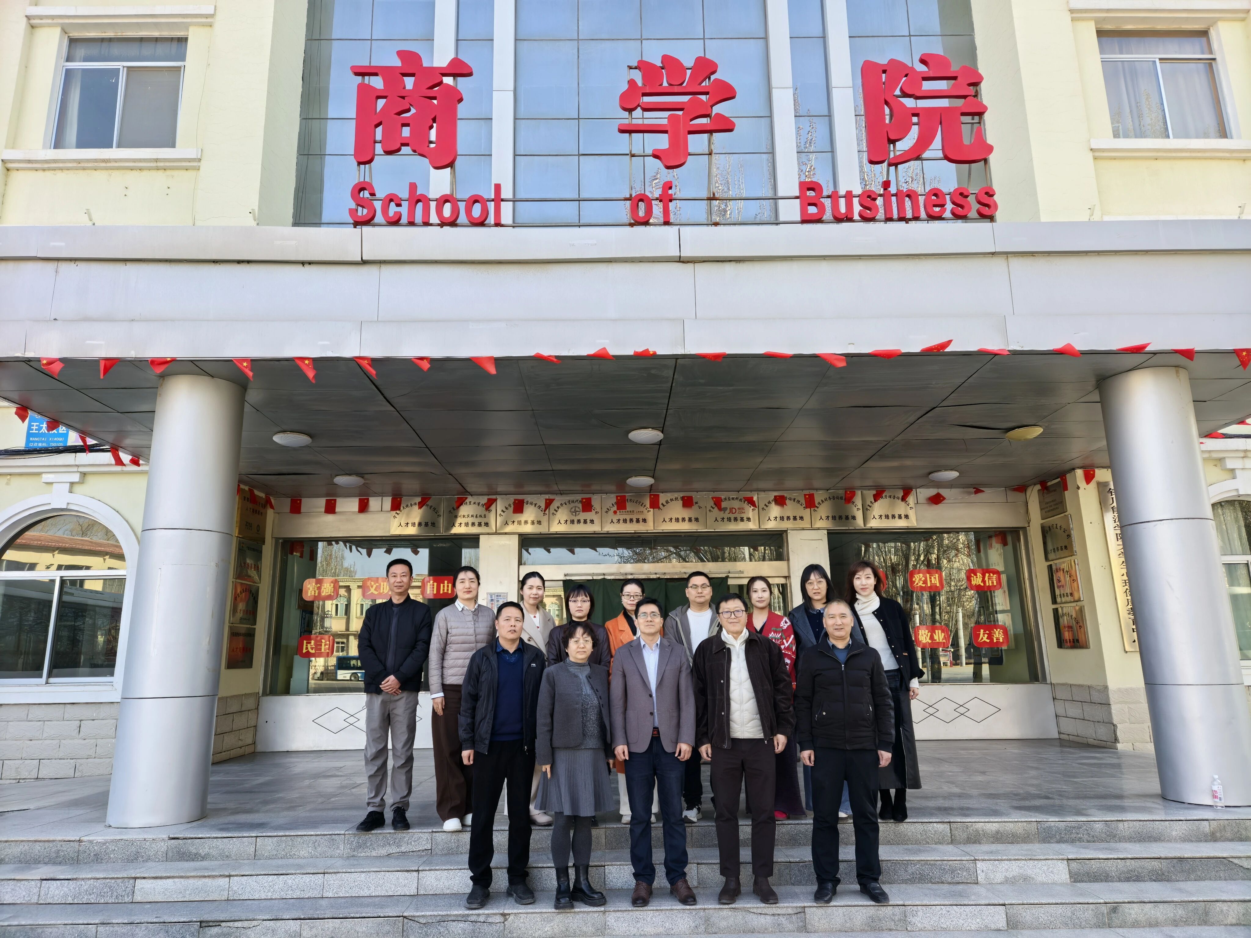 近日,宁夏职业技术大学商学院院长陈志新教授、副院长王庆锋、各教研室主任、博士代表一行7人来我校商学院调研交流。我校商学院院长刘向阳教授,副院长雍建英、薛峰,各教研室主任,博士代表参加此次交流。