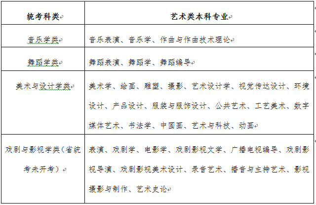 考生可参照《艺术类本科专业与艺术统考科类对应表(试行)》(附件1)选择本人报考的艺术专业科类。